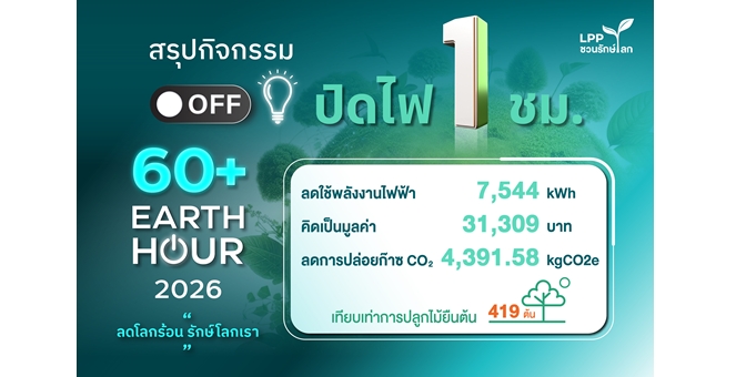 star_borderModal Upgrade PackageLPP สรุปผลกิจกรรม “60+ Earth Hour 2026” ผนึกกำลัง 270 โครงการลดใช้พลังงานต่อเนื่อง พร้อมชูมาสเตอร์เซอร์วิส “UP” ยกระดับการดูแลคุณภาพชีวิตที่ยั่งยืน31 มี.ค. 2569 12:58 น.