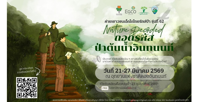 star_borderModal Upgrade PackageEGCO Group รับสมัครเยาวชนหัวใจกรีน ร่วมถอดรหัสป่าต้นน้ำอินทนนท์ กับ “ค่ายเยาวชนเอ็กโกไทยรักษ์ป่า” รุ่นที่ 625 ก.พ. 2569 13:34 น.