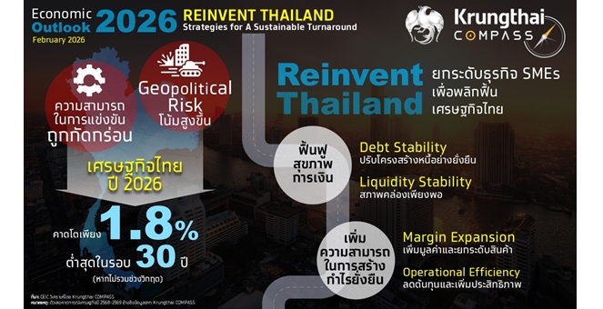 star_borderModal Upgrade Package“กรุงไทย” คาด GDP ปี 2569 เติบโต 1.8% ถึงเวลาพลิกฟื้น SMEs ด้วย Reinvent Thailand3 ก.พ. 2569 14:12 น.