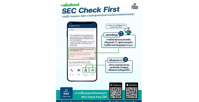 star_borderModal Upgrade Packageก.ล.ต. ปรับปรุงแอปฯ “SEC Check First” เพิ่มฟีเจอร์แสดงรายชื่อ Investor Alert รายล่าสุด พร้อมเพิ่มช่องทางแจ้งเบาะแสหลอกลงทุน3 ก.พ. 2569 12:32 น.